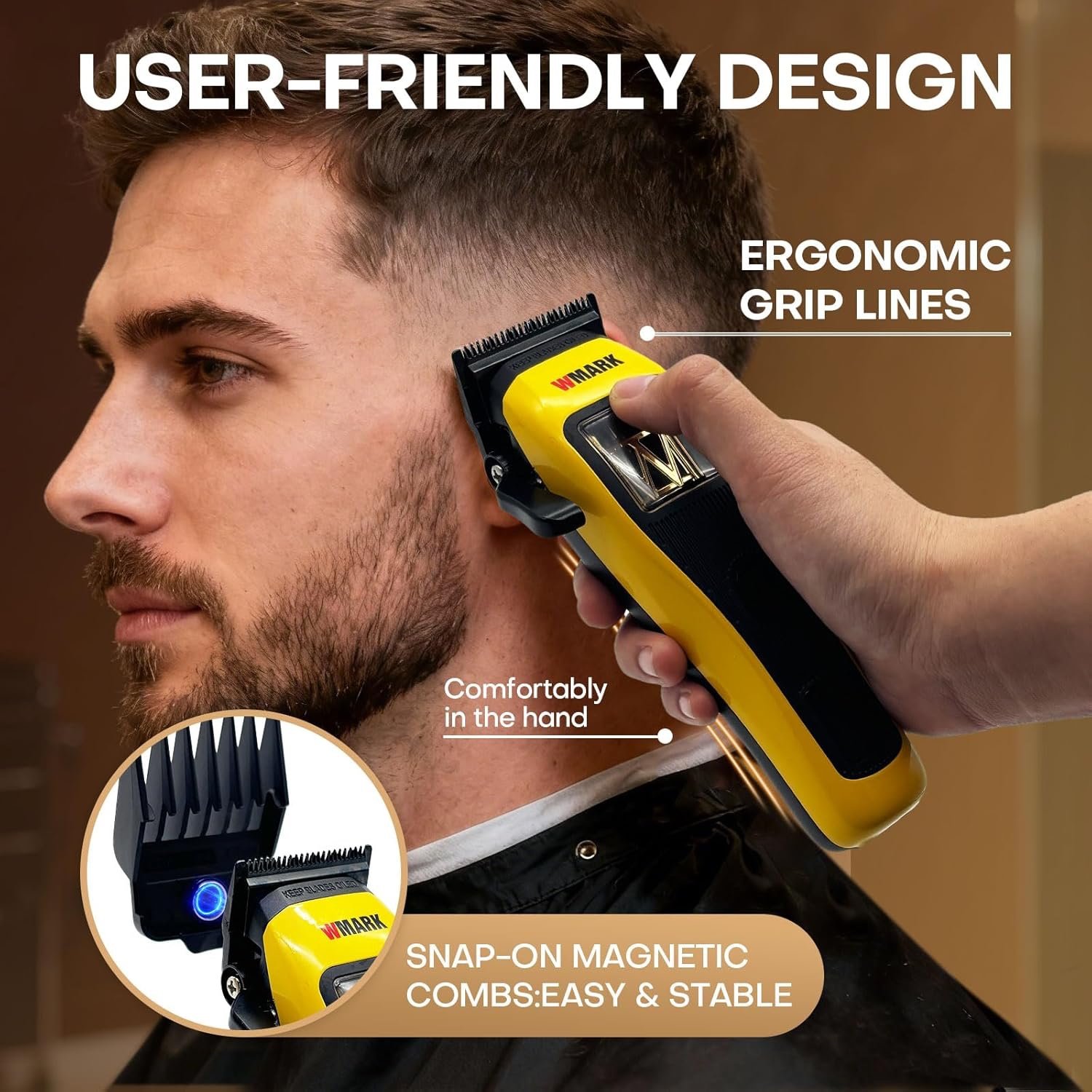 • CLICK-TO-FADE PRECISION & SECURE GUIDES – Side 5-click adjustment lever offers precise length control for creating ideal fades. It works with six magnetic combs (1.5/3/4.5/6/10/13mm) that snap on securely in an instant—no slipping or shaking