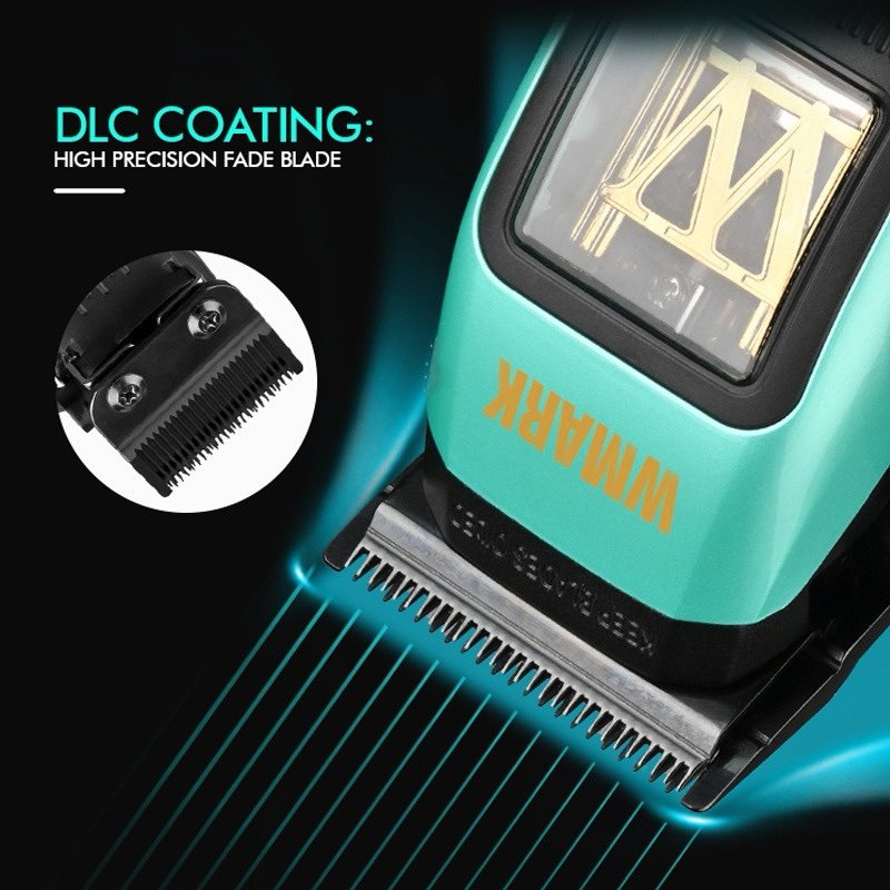 Accessories: 6 magnetic guide combs (1.5/3/4.5/6/10/13mm), cleaning brush, lubricating oil, charging base, 2 extra covers, 2 hair stickers, 2 hair combs, and USB Type-C charging cable.
